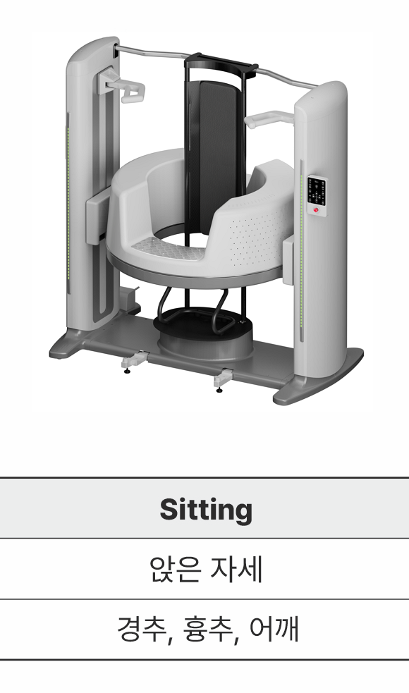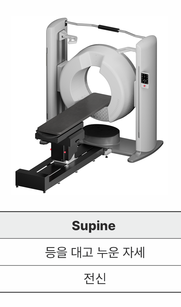 환자별 상태와 상황에 맞는 촬영을 위해, 이 제품은 서 있는 자세와 앉은 자세, 등을 대고 누운 자세의 세 가지 촬영 모드를 지원합니다. 680mm의 넓은 보어 직경은 환자의 자세 변경을 최소화하고, 촬영 시간을 단축하며, 움직임으로 인한 오류 가능성을 줄여줍니다.